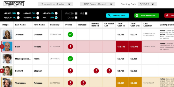 Guardian Pro Premier™ improves compliance monitoring and reporting by reducing manual data entry and operational overhead. Its intuitive web based interface is accessible from most browsers and accelerates data entry across cage and transaction monitoring locations. With automated transaction posting, real time player compliance updates, and seamless integrations with casino management systems, notices can be reviewed quickly and reports generated for MTL, MIL, CTR, and SAR submissions.